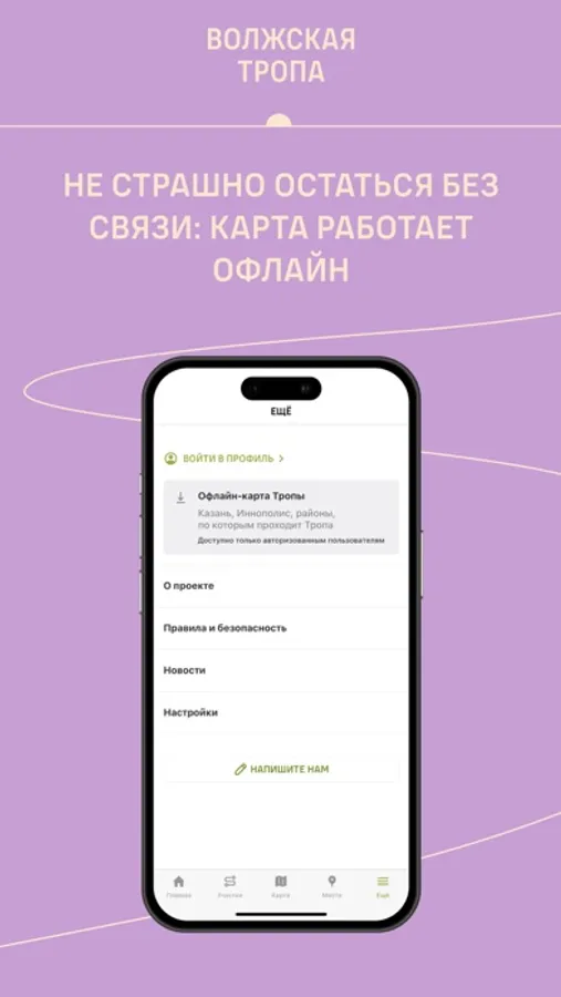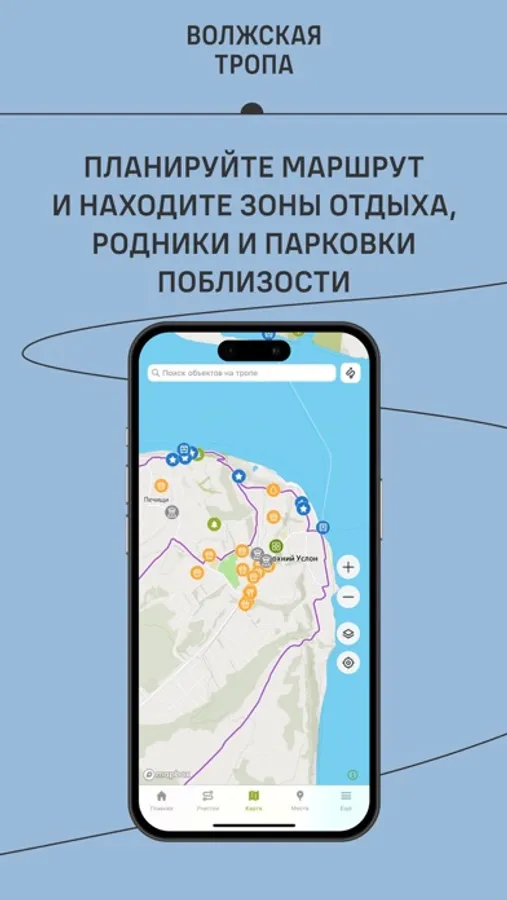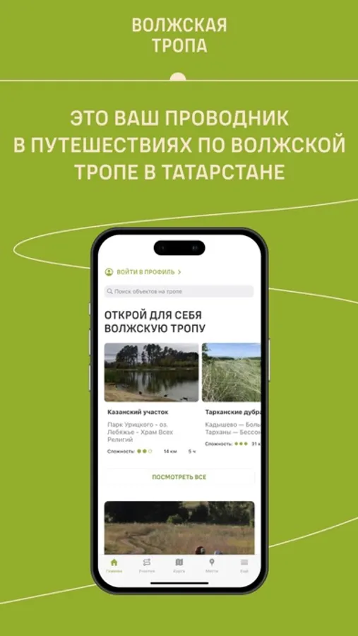 Официальное приложение проекта «Волжская тропа». Надежный проводник в ваших коротких и продолжительных пеших походах вдоль правого берега Волги на территории Татарстана от границ с Республикой Чувашия до Ульяновской области.