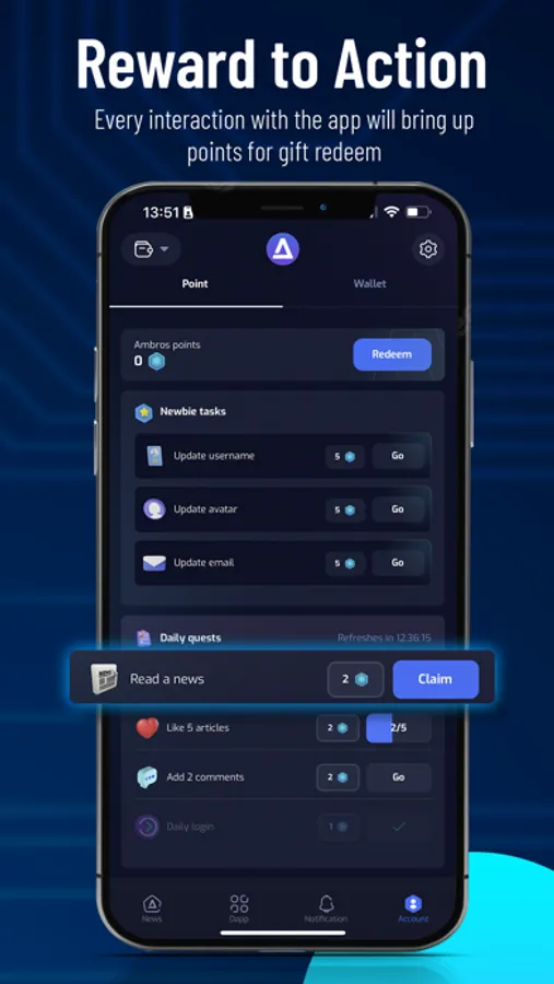 The first web3 mobile app to reward users on daily interaction like reading news, learning new knowledge, and making transactions...with an enriched and diverse claimable rewards pool. Especially, Ambros integrates multiple Dapp from different blockchains so that you can stay updated with the projects you are interested in, and never miss any airdrop or give-away events.
