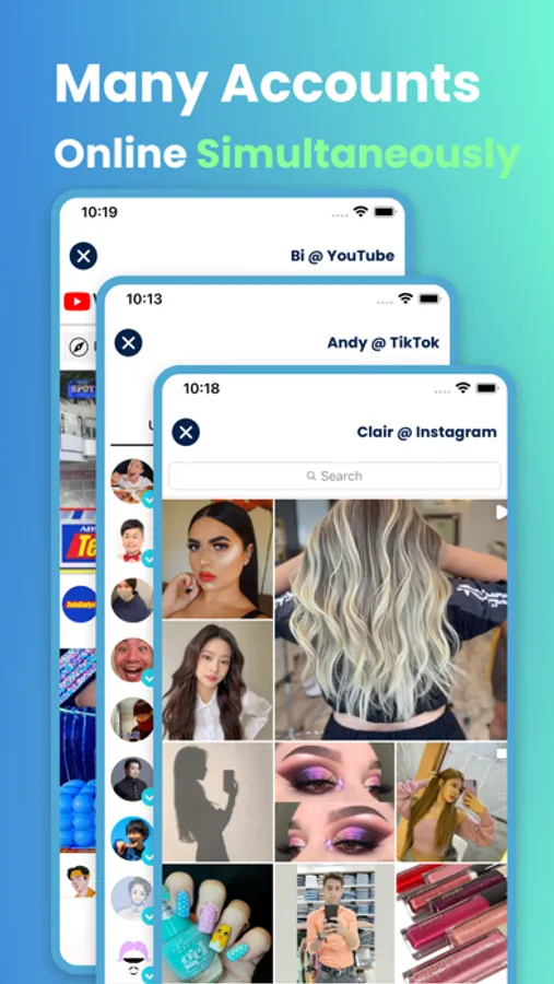* Easy login to multiple social accounts and keep them online simultaneously.