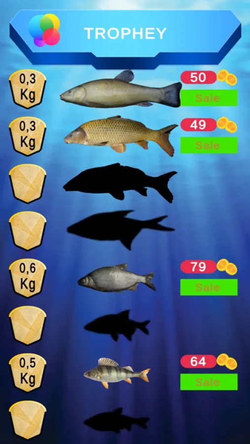 On the coins received from the sale of the catch, you can open new lakes, floats, bait, fish hooks, fishing rods, fishing line. The correct selection of fishing equipment for a certain type of fish will ensure a good bite.