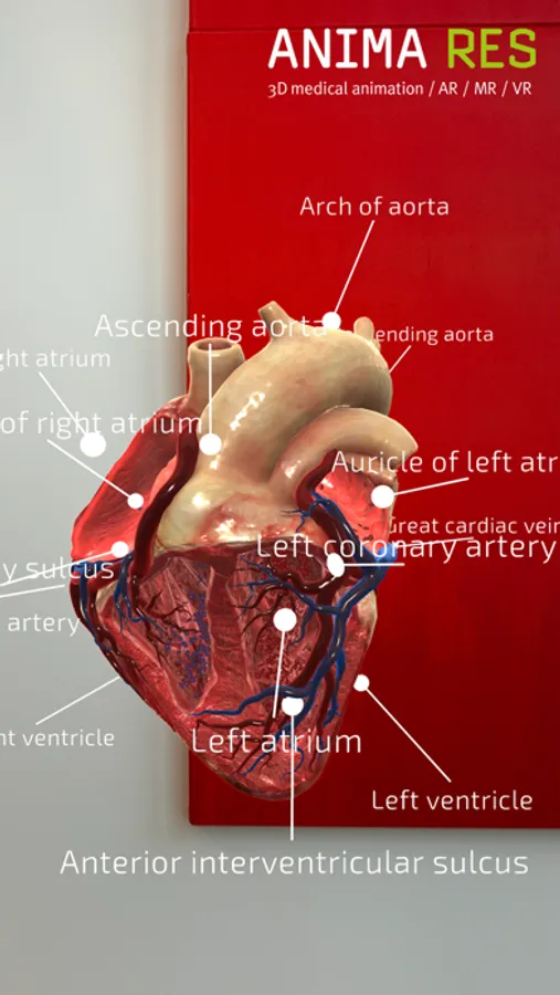 Tap on the spatial annotations to get more dedicated information for each region of the heart from every angle.