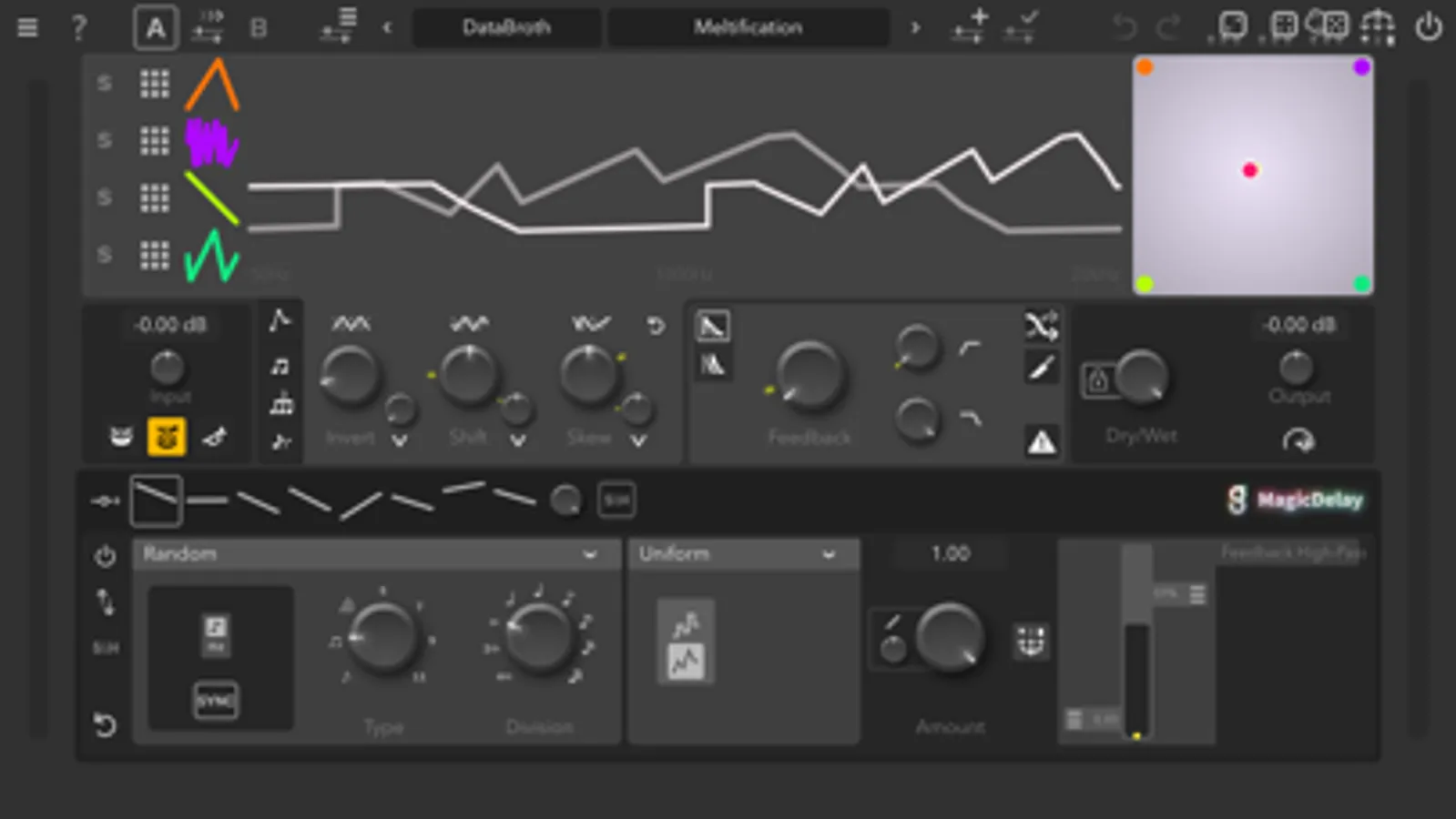 MagicDelay is a professional, studio grade, spectral delay effect. Spectral because it allows the effect amount to be controlled per-frequency as if you had thousands of delays combined into one. Something not possible in the analogue world. Controlling thousands of delay times sounds complicated, but we made this process really simple. At the heart of MagicDelay is the Curve Editor where you can draw up to 4 separate curves and fluently morph between them using the adjacent XY pad. The final morphed curve can be inverted, shifted, and skewed for further creative control. The delay features two feedback types, control of the amount of feedback, and high and low pass filters.