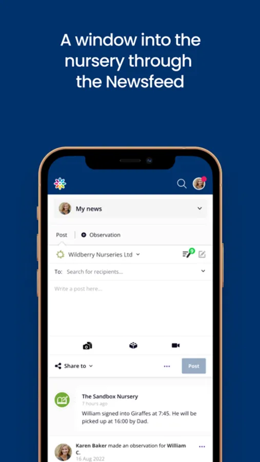Connect with your child’s nursery day, their key person and the nursery team, anytime, anyplace.