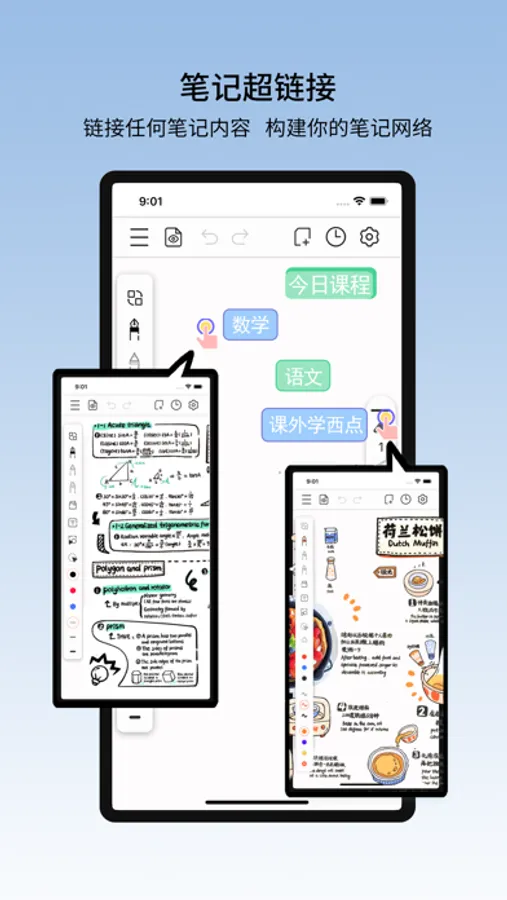 * 支持各种第三方 PDF模板, 手账,支持超链接笔记, 扩展笔记