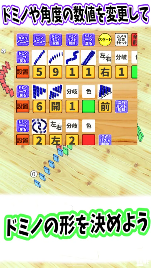 ドミノを設置し倒しドミノ倒しゲームを楽しもう。