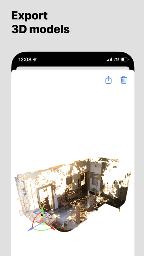 Capture your environment and export 3D models. This app uses LiDAR Scanner to build 3D map.