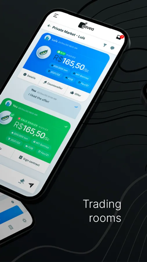 Gavea Marketplace, your private blockchain marketplace. Your exclusive platform to chat, price and trade with your clients and suppliers, private and secure, with products’ traceability and ESG checks.