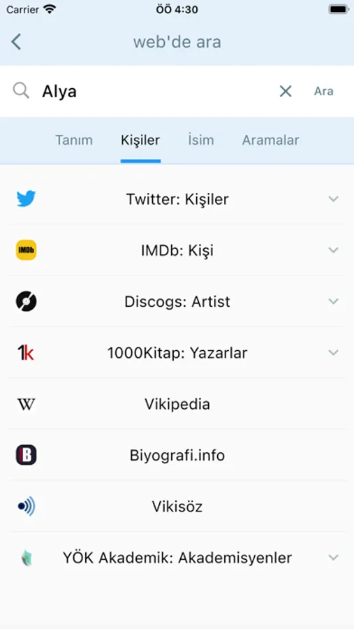 Twitter, IMDb, Discogs, 1000Kitap, Biyografi.info, Vikisöz, Yök Akademik, Nişanyan Yer Adları, Behind The Name, Forebears
