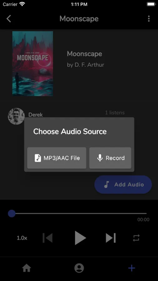 Upload or record audio directly in the app. A private audiobook for your kids, the soundtrack to your favorite book — the choice is yours.
