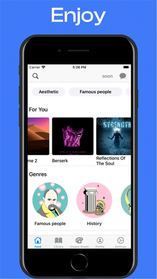 • Explore categories like Music, Art, Nature, Motivation, and more