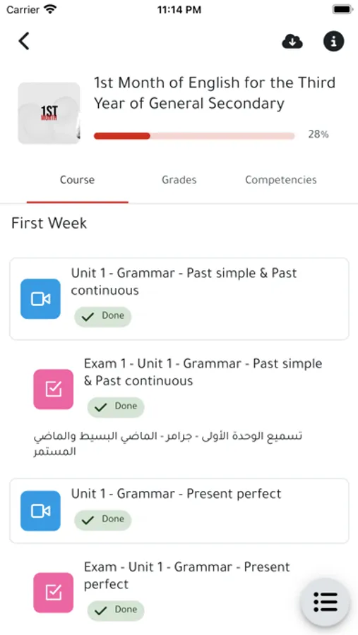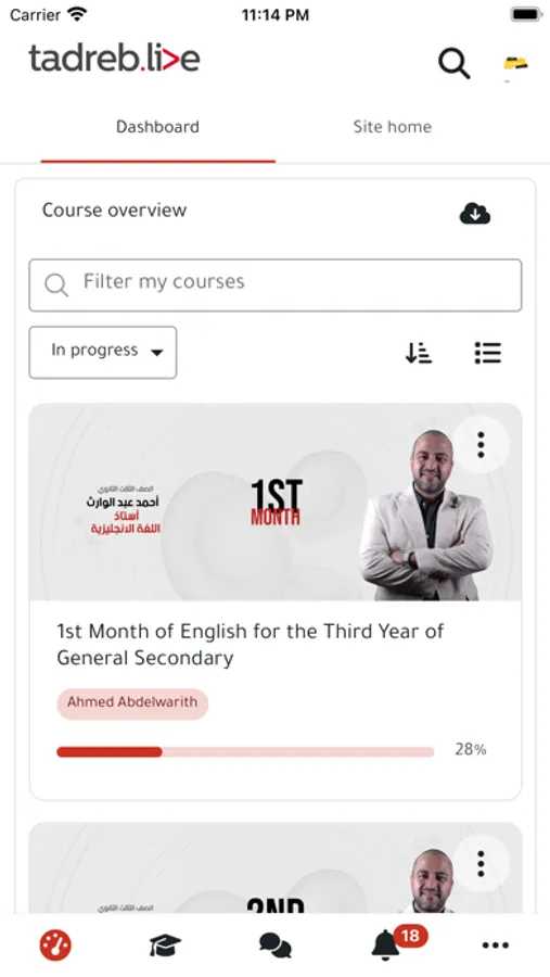 The control panel for the educational community tadreb.live allows students/trainees to browse and interact with the shared academic courses. Through it, the student/trainee can: