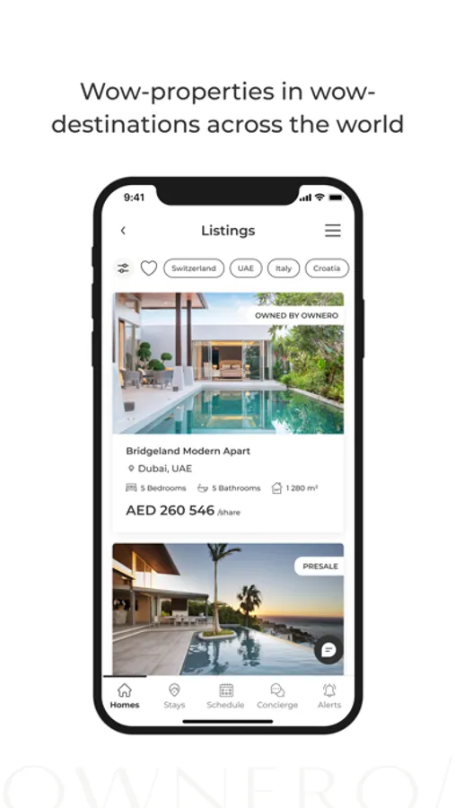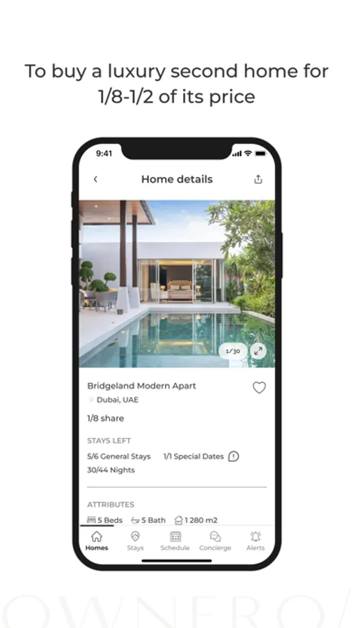 OWNERO is a real estate and hospitality service that enables people to buy second home for 1/8 of its market price and own it free of remote management hassle. Our model allows to save significantly on the purchase price and to turn all second home ownership’s «cons» into«pros». OWNERO’s proprietary platform allows B2C customers buy second homes through fully real estate holding company divided into up to 8 shares, maintain and manage their second homes, schedule their stays, distribute operating costs and taxes and easily sell shares through our partner agents and on OWNERO marketplace.