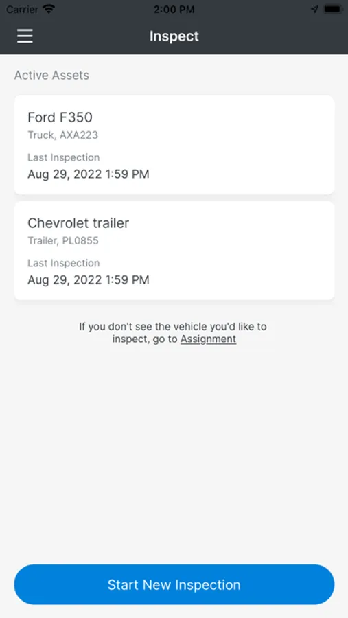 The FC Inspect mobile app allows you to assign the assets you will be using for the day to yourself and complete your Driver Vehicle Inspection Reports (DVIRs) to stay compliant with the government regulations in the U.S. and Canada.