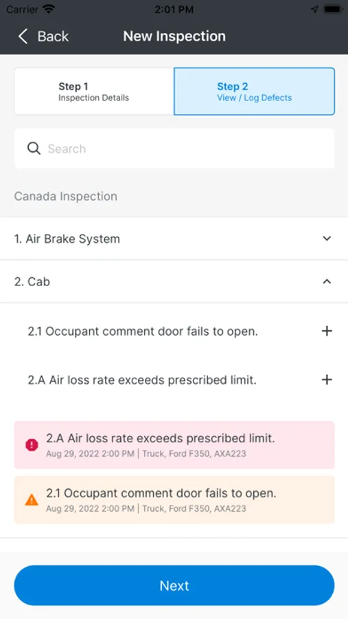 Using the FC Inspect app, you can easily perform pre/post-trip inspections for all your assigned assets on the same DVIR. You can log any minor or major defects, and sign off on the report, providing fleet managers at the head-office an instant status update.
