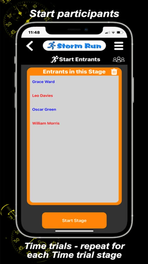 StormRun is a simple to use timekeeper App for any sport - ideal for any timing application involving more than one participant. It is particularly suited for time trial events by allowing any number of participants to start together in each heat.
