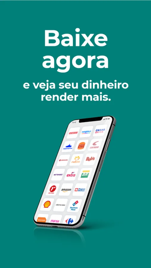 O app para você economizar sempre que usar. Sinta sua carteira ficando mais cheia, veja o seu dinheiro render mais e fique mais perto de realizar os seus sonhos!
