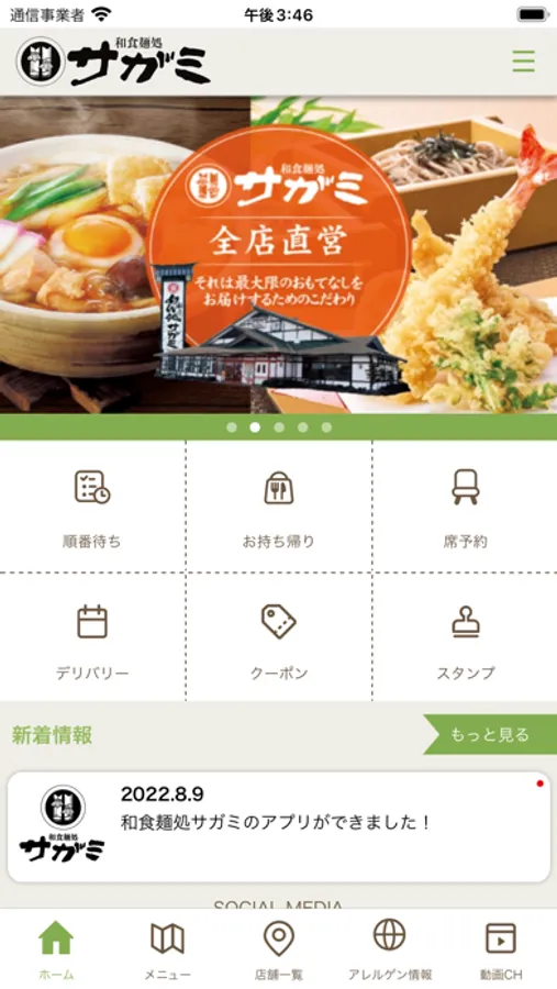 和食麺処サガミの各予約が行え、スタンプカードやクーポン機能の付いたお得なアプリです。