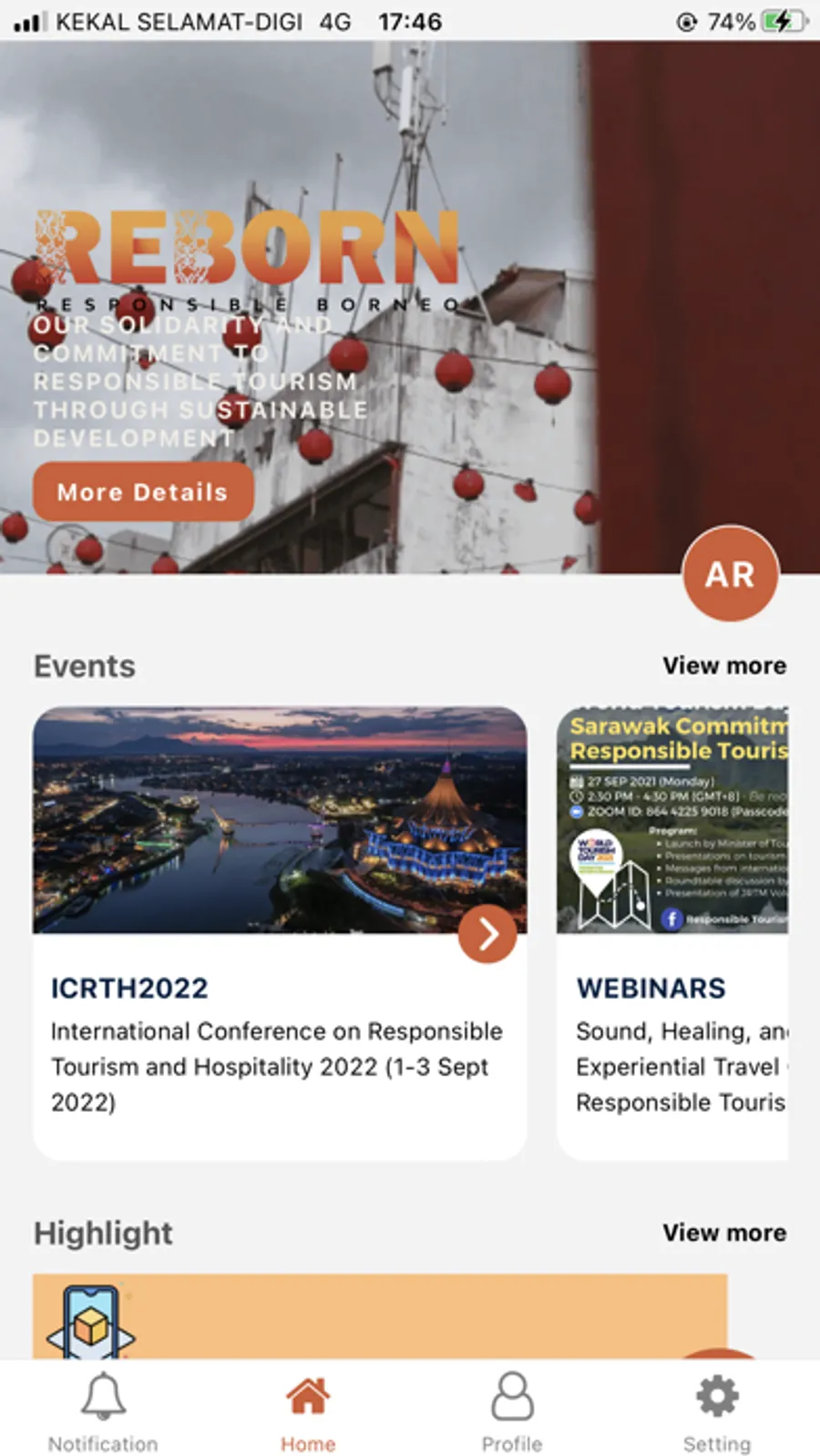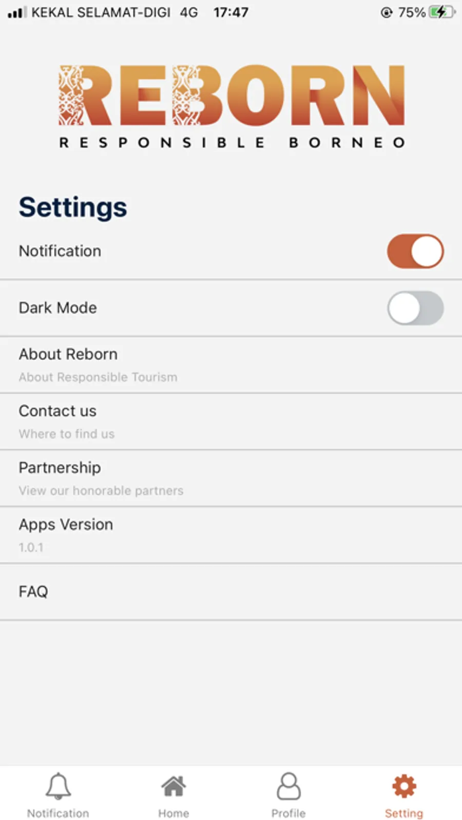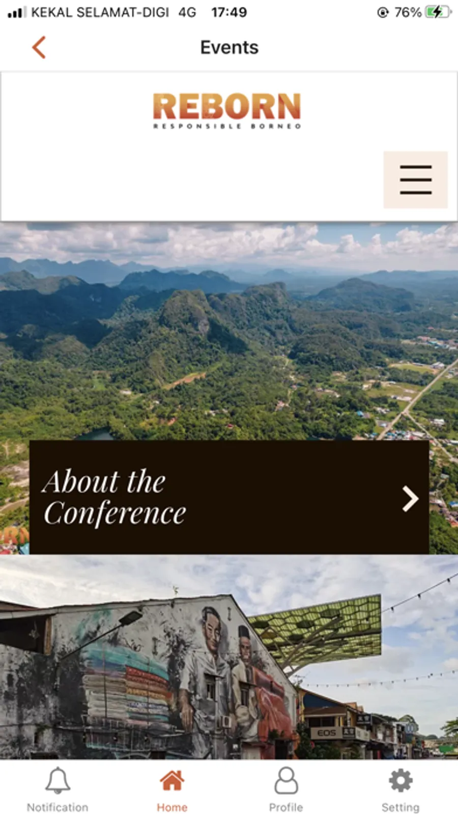 Responsible Borneo, or Reborn is a mobile application platform that provides Sarawak tourism informative to tourists. Augmented reality technology also implement to exhibit the Sarawak's identities.