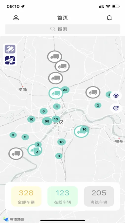 1.首页地图车辆聚合分布,可总览车辆的分布情况~