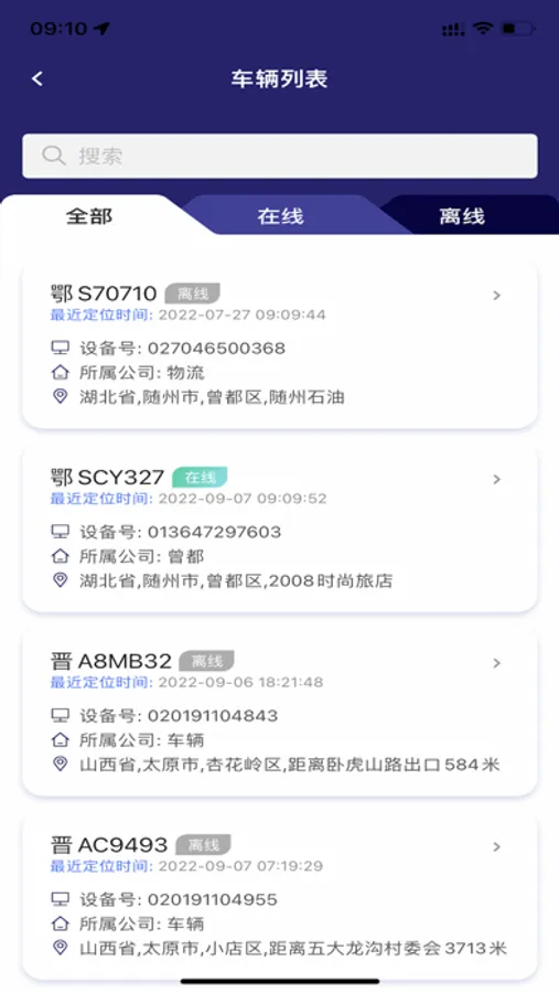 3.车辆列表可查看所有车辆的状态和基本信息,还支持车辆搜索功能~