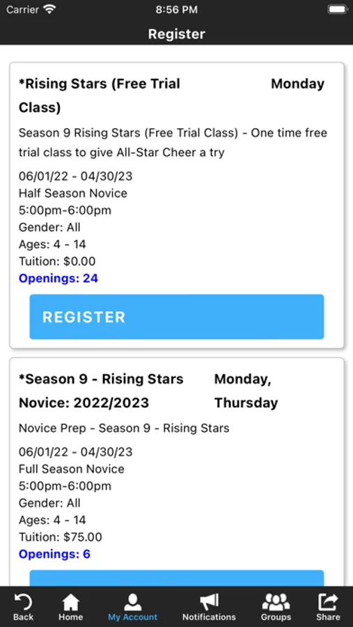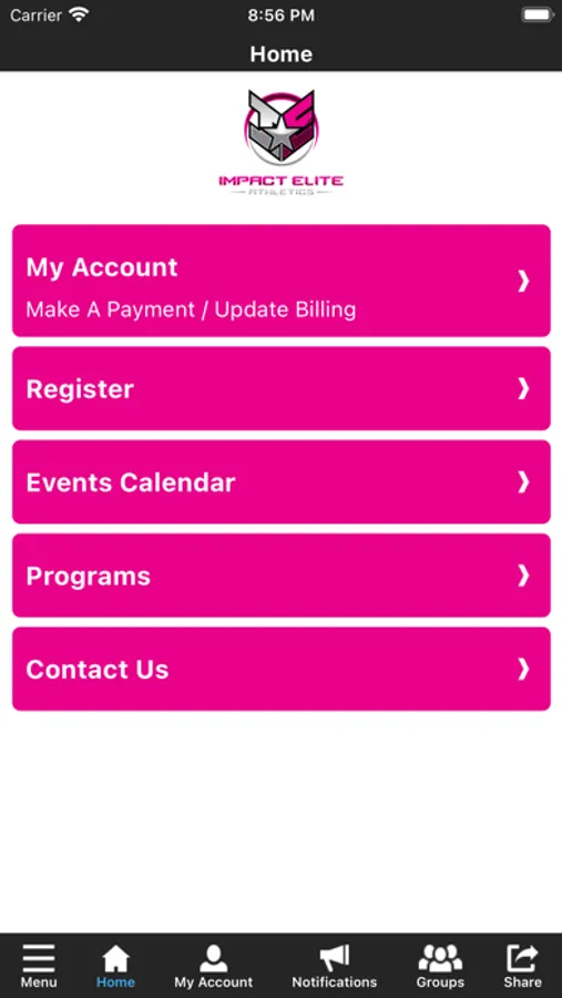 The Impact Elite Athletics app allows you to manage your account with ease, register for classes, parties, and special events. You'll also receive important notifications about class changes, closings, registration openings, special announcements, and upcoming events.