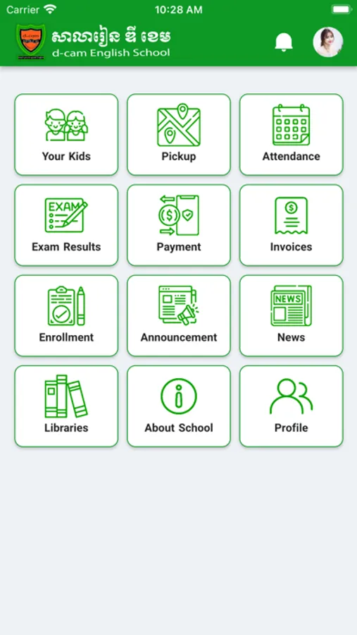 d-cam App is developed for one Private school in Cambodia. the purpose is to make a better communication between school and parents/guardian. parents/guardians of school could register and use the app by their phone number(parents/guardians) and students ID (students) that already exist in school database. The following are the key features: