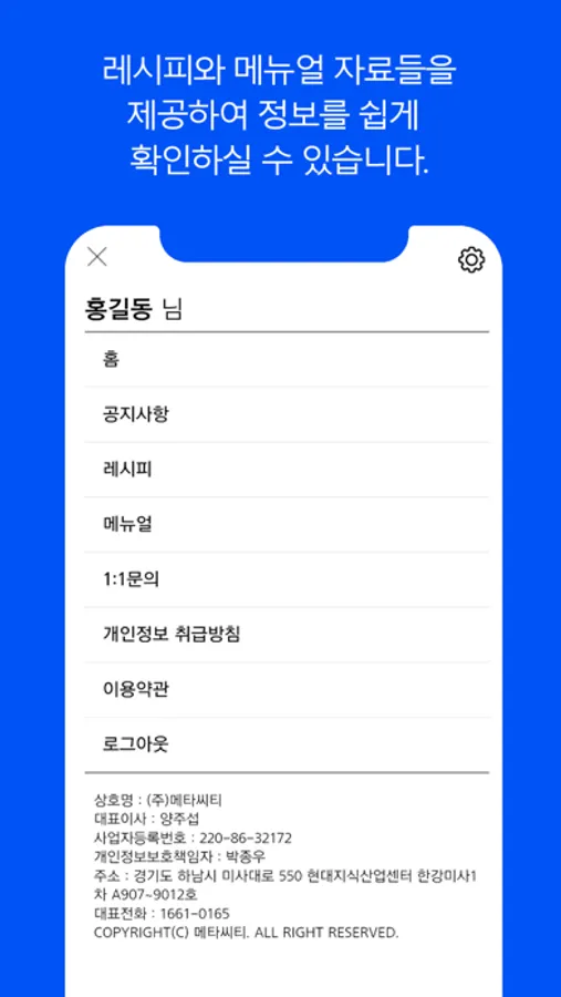 공지사항 / 레시피 / 메뉴얼 / 1:1문의 앱에서 제공하는 다양한 정보를 확인하실 수 있습니다.