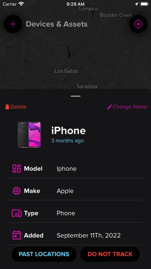 View the current location of your Devices and Assets. Mobile phones and tablets are automatically added to your tracking list.