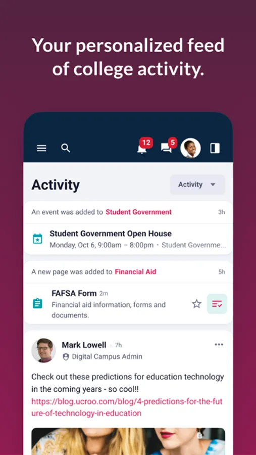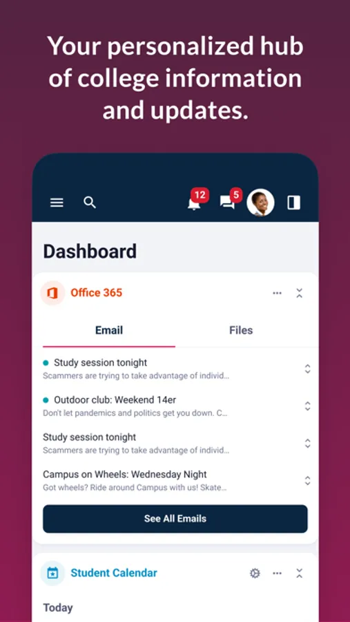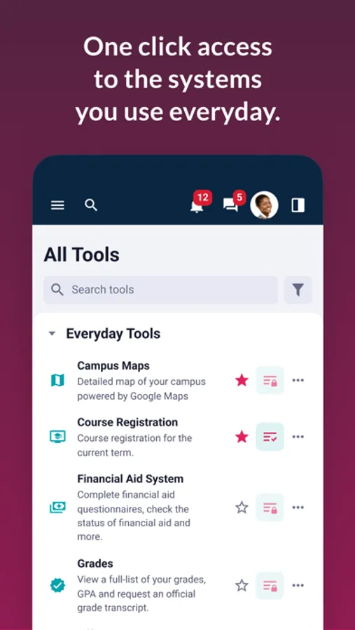 - Receive key notifications from Financial Aid, the Registrar, and the Business Office.