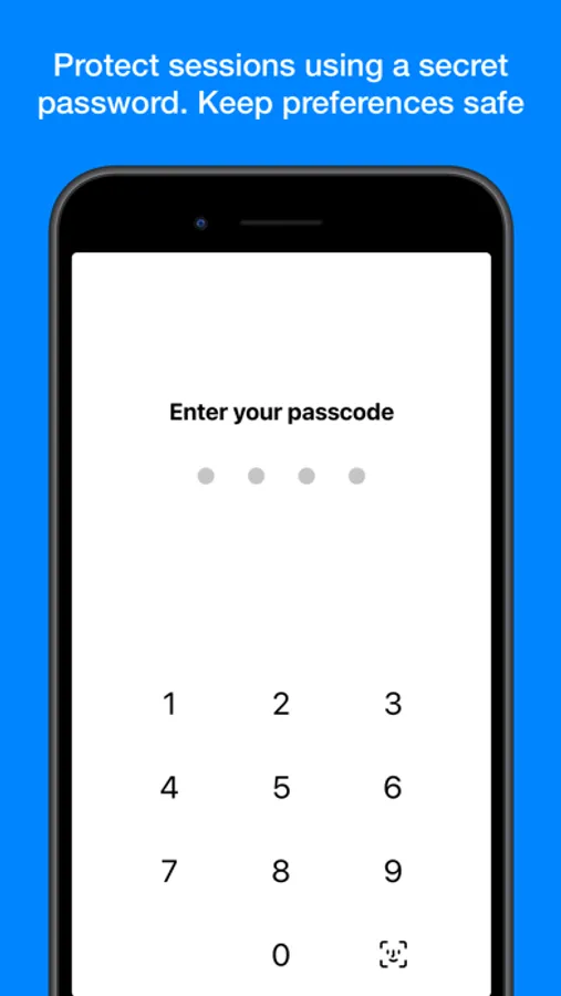 • Protect sessions using a secret password and optionally Face or Touch ID. Keep preferences safe, including removal protection