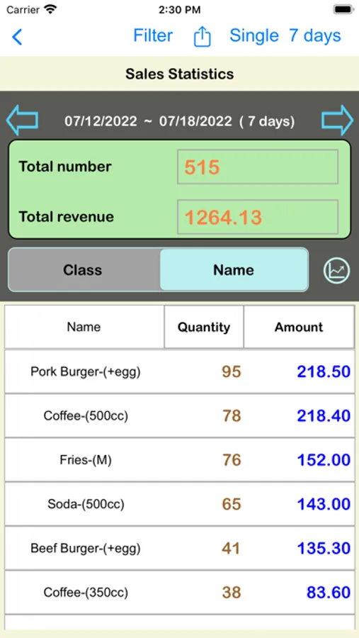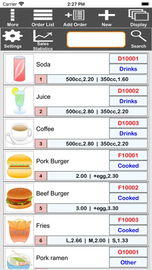 - Receipt information can be stored in the order list, and you can view historical sales data.