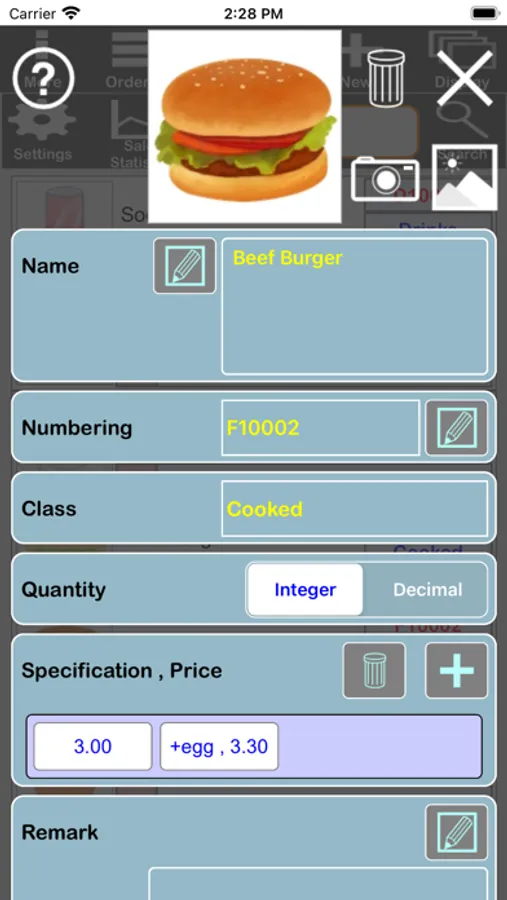 - You can take pictures or use the picture library to add product pictures.