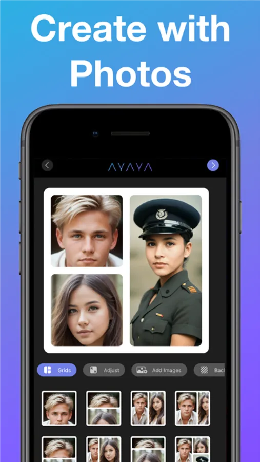 Our app's collage maker feature allows you to add your generated artworks or select photos to create a beautiful collage. Our app's editing tools allow you to adjust the size, position, and orientation of each element, ensuring that your collage looks just the way you want it to. In addition to these key features, collage maker also includes a text editor, multi-result display, and the ability to remove backgrounds from your photos. All of these features have been designed with the user in mind, to provide an intuitive and seamless experience.