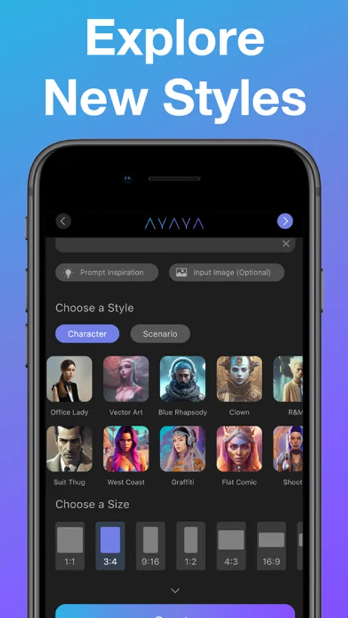Our app's AI technology can generate various styles of artworks based on the chosen style, including Photographic, Oil Painting, J-Manga, Realistic Anime, Matte Painting, Vector Art, Flat Comic, Concept Art, Illustration, Poly, Sci-Fi and more. With just a few taps, you can create a unique masterpiece, You can then save the generated artwork to your device, share it on social media, or use it in our collage maker.