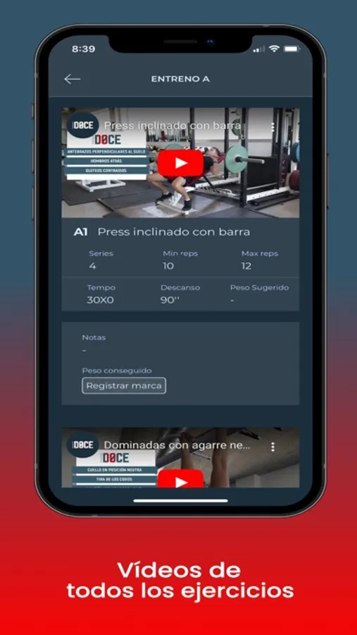 2. Podrás ver vídeos de todos los ejercicios de tu fase de entrenamiento, de forma que sepas cómo ejecutarlos correctamente.