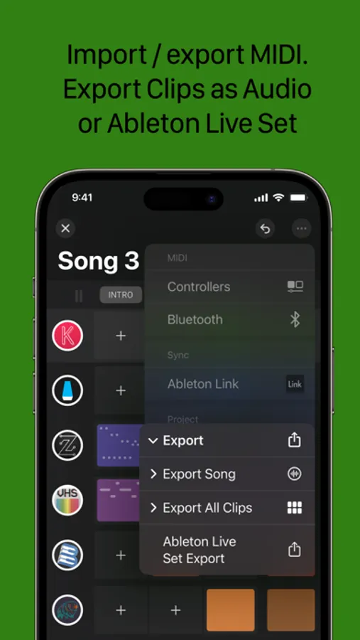 Export your clips as audio or MIDI files for further editing or sharing with collaborators.