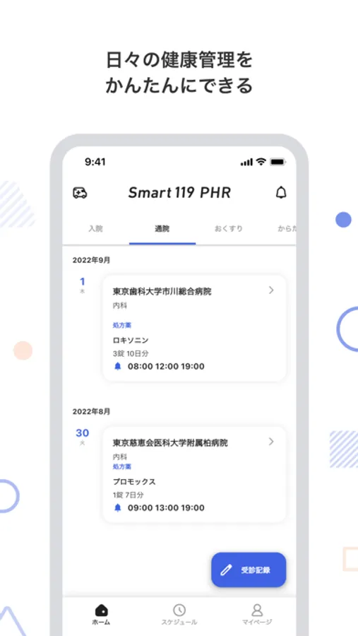 ・普段の通院・入院などの受信情報や薬を買った時の記録がかんたんにできます