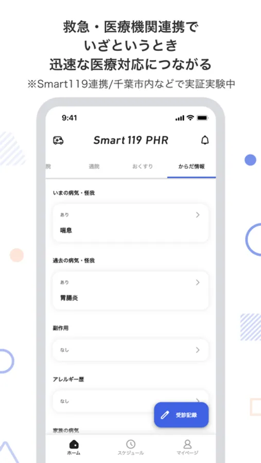 健康管理をかんたんにしながら救急時にも役立つアプリ・Smart119 PHR(スマートイチイチキューピーエイチアール)