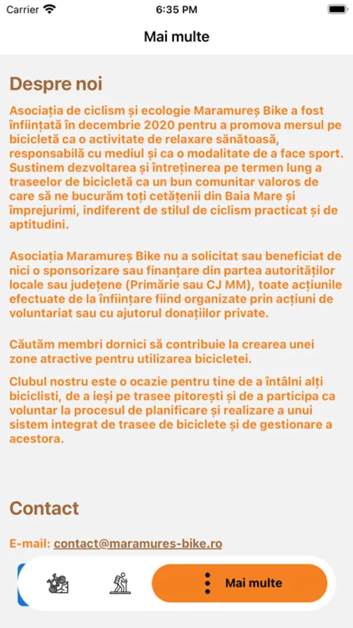 Asociația de ciclism și ecologie Maramureș Bike a fost înființată în decembrie 2020 pentru a promova mersul pe bicicletă ca o activitate de relaxare sănătoasă, responsabilă cu mediul și ca o modalitate de a face sport. Sustinem dezvoltarea și întreținerea pe termen lung a traseelor de bicicletă ca un bun comunitar valoros de care să ne bucurăm toți cetățenii din Baia Mare și împrejurimi, indiferent de stilul de ciclism practicat și de aptitudini.