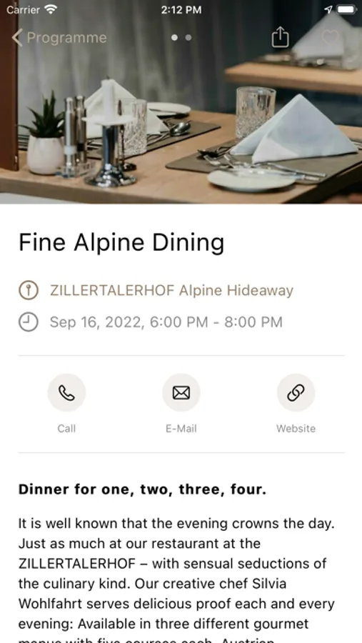The ZILLERTALERHOF app accompanies you during your stay in our stylish boutique hotel and informs you about current offers as well as exciting events and gives you many useful tips and hints. Filter by different interests such as wellness, yoga or culinary. Put together your own program from our activities. In this way, the ZILLERTALERHOF app offers content tailored to your personal needs.