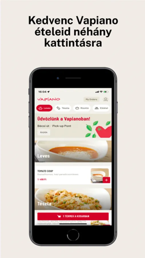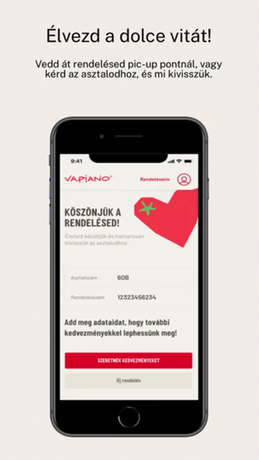 Válaszd ki kedvenc Vapiano ételeidet, kérd pick-up ponthoz vagy az asztalodhoz és fizess könnyen és gyorsan az alkalmazáson belül.