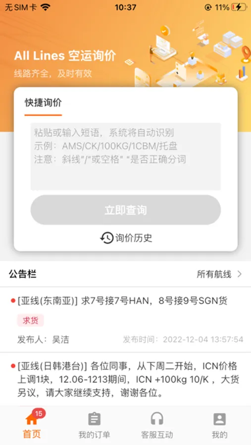 对接多服务平台,打通企业内部和外部合作方的业务数据,实现互联互通,多渠道在途全程询价报价,按吨、按方、按件等一键自动计价,系统自动推荐最优方案、人工回复推荐更优方案,是为货代行业提供在线询价与订舱的工具