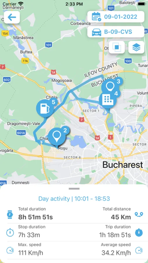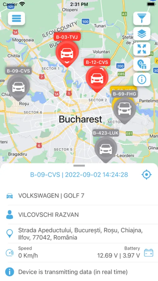 • On LiveMap, you can see the travel direction for all the vehicles, check if the drivers authenticate with iButton identifier and you can also benefit from the advanced filtering options