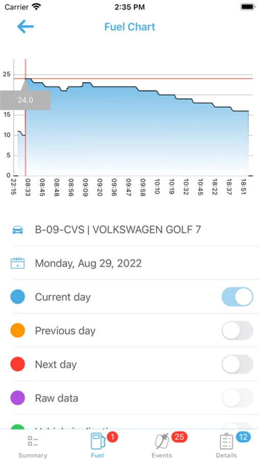 • The App shows you the fuel supplies and withdrawals and you can check anytime the fuel graphic on your vehicles