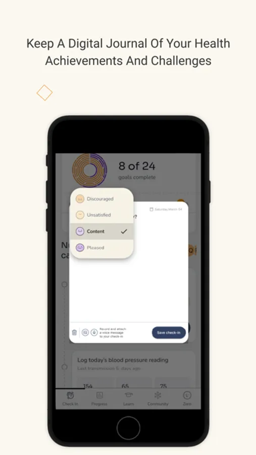 We know that your health journey is constant and fluid and a lot happens between appointments. With the Journal Entry feature, you'll be able to log notes, questions win, and struggle right as they happen so that your Care Team can stay updated on how you are doing. Appointments with your Wellness Guide and Care Manager will be much more efficient!