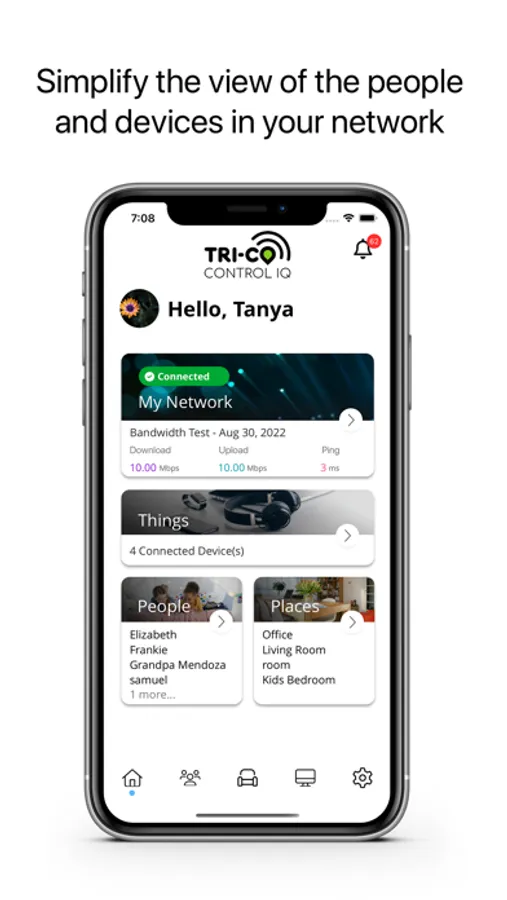 Tri-Co Control IQ is the ultimate mobile application for subscribers to control their home Wi-Fi network. Manage your network by setting priorities, utilizing parental controls, and protecting your home with security features. Take control with device management, testing your speed, and viewing all connected devices.