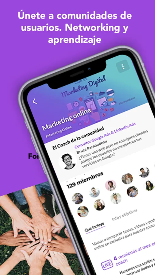 -Networking y aprendizaje. Unete a comunidades lideradas por un mentor que ofrecerá formación exclusiva además de acceder a un espacio donde conocer a personas con tus mismos objetivos y situación