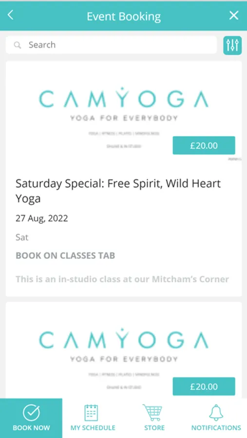 Download the app to view schedules & book sessions at Camyoga!
