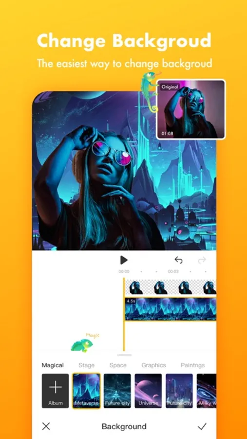 With advanced AI technology, you can cut out figures and objects in videos with just one tap! We truly believe that even a beginner is capable of creating next-level content with Magicolor!