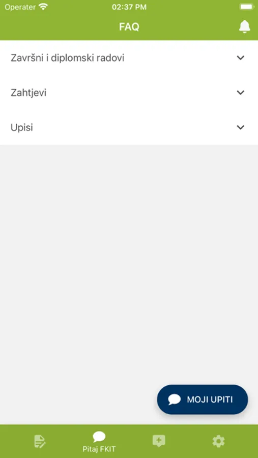 FKIT Mobilna aplikacija namijenjena je za sve studente Fakulteta kemijskog inženjerstva i tehnologije, Sveučilišta u Zagrebu. Aplikacija pruža informacije studentima o fakultetu i studijima.